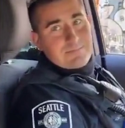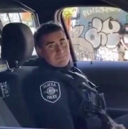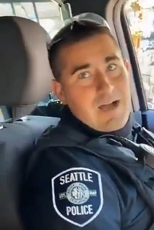 In the video taken by one of the protesters, the Seattle cop is seen pulling up his vehicle before addressing the activist and asking him how he’s doing.
