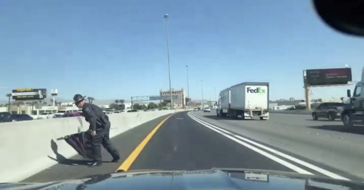 A Facebook video shared by the Nevada Highway Patrol shows the part when Trooper Jason Buratczuk, who is also an Air Force veteran, pull over at the northbound lane of Interstate 15 near Sahara Avenue.