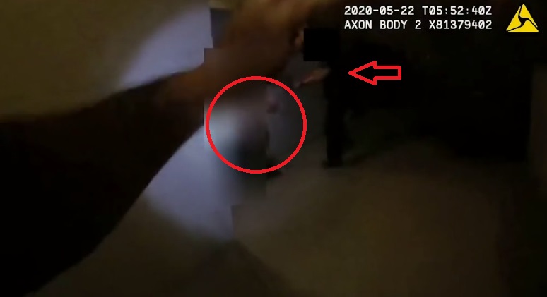 Once the man opened the door holding a handgun in his right hand, he appeared to be surprised to see police officers and immediately put his gun behind his back.