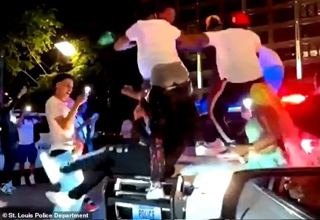 Mayor Tishaura Jones states, “Our office has reviewed the video of people jumping on our patrol cars this weekend. While I’m thankful the SLMPD responded quickly and dispersed the crowd without conflict or injury, I’m disappointed in those people who will now have to face consequences for their behavior.”