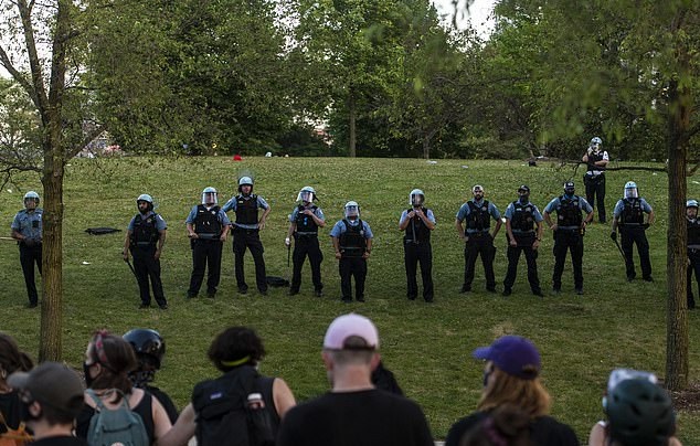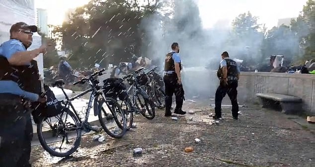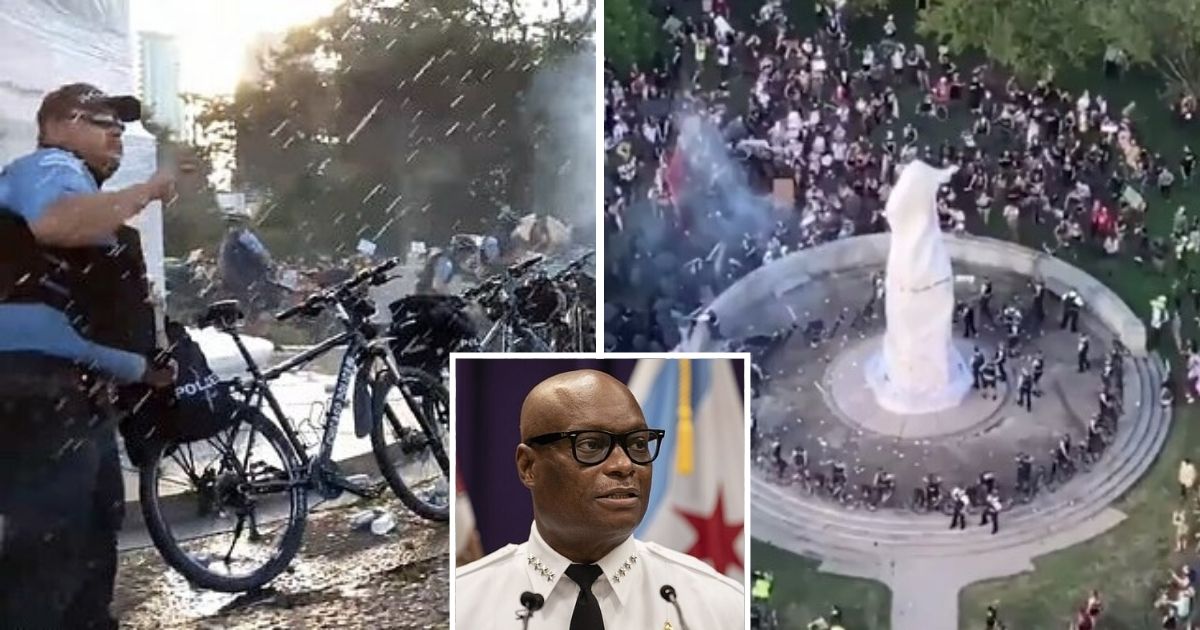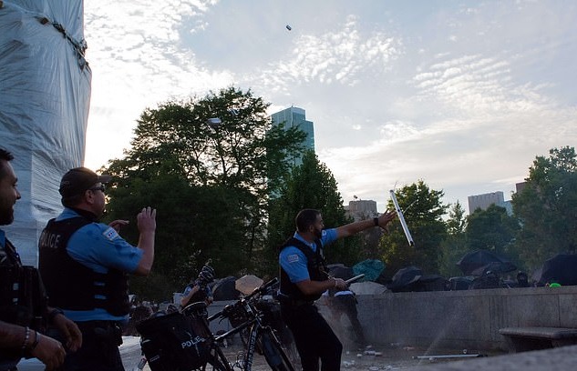 “Chicago Police officers had fireworks, frozen water bottles and other projectiles thrown at them in what started as a peaceful protest,” Chicago Police stated.