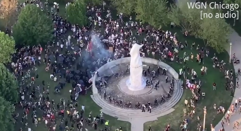 The protest occurred in Grant Park, Chicago, where hundreds of demonstrators were seen demanding for the Christopher Columbus statue to be removed and for the police to get defunded.
