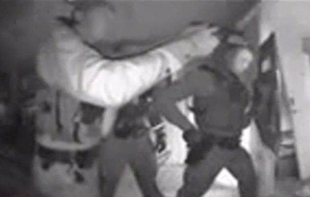 After the father refused to let them in, the officers returned with a search warrant and broke into the house in full force.