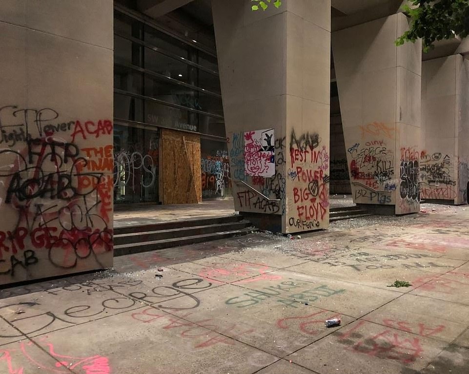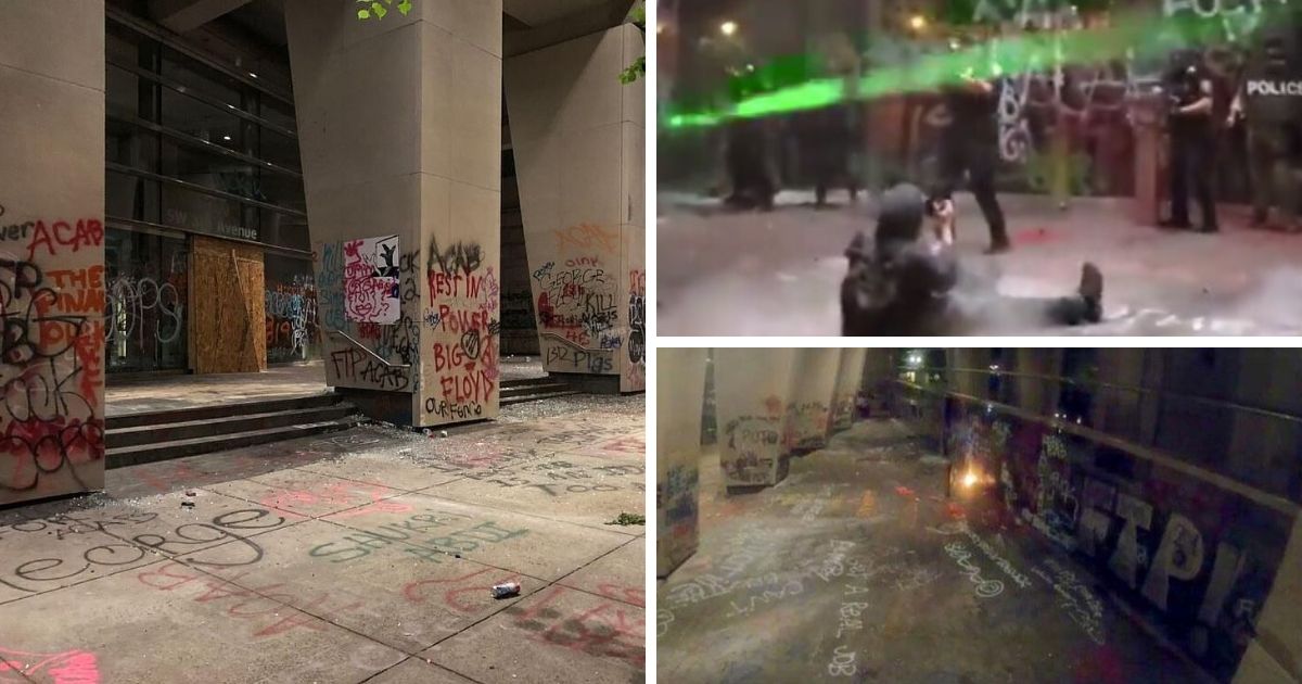 The ‘protest’ occurred at Multnomah County Justice Center on Thursday when rioters gathered and protested peacefully for several hours before starting to wreak havoc.