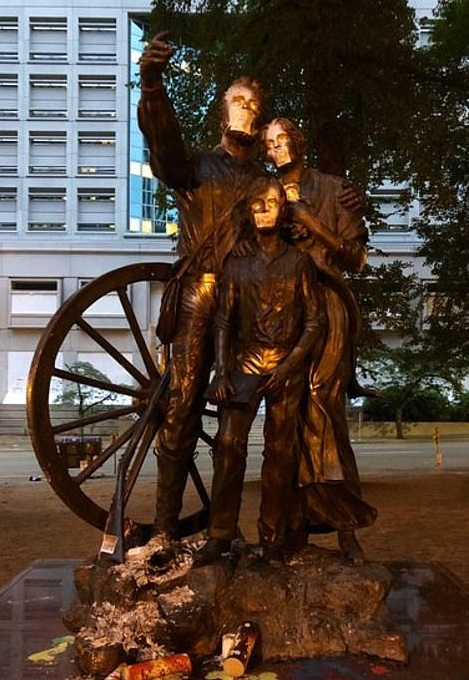 As the Justice Center was being besieged, the protesters also targeted and vandalized The Promised Land Statue located at Chapman Square and the iconic 120-year-old elk statue that they attempted to set on fire.
