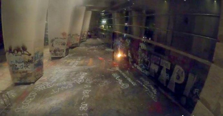 After the crowd appeared to have disbanded, the protesters once again gathered at the western side of the courthouse at 1 am and started launching mortars. As one of the fire explosives entered the building through the broken door, the courthouse briefly caught fire before the blaze was put out by the police.