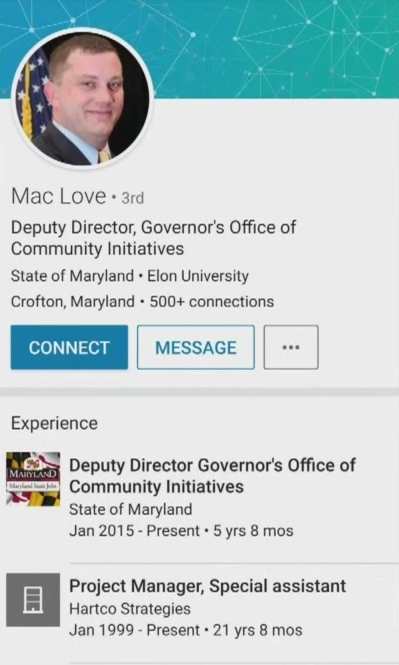 Arthur (Mac) Love IV, the deputy director of the Governor’s Office of Community Initiatives in Maryland, had been fired after sharing memes and statements on social media, Maryland Gov. Larry Hogan’s office confirmed.
