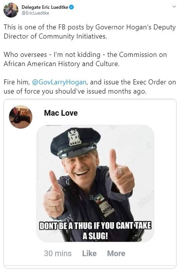Eric Luedtke, a Maryland delegate, wrote on Twitter saying Hogan should fire Love.