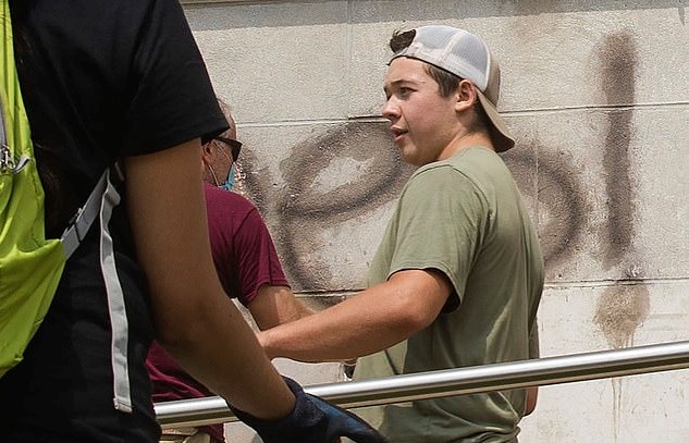 Other social media posts included a photo of people marching with a caption: ‘Defund the police! We can police our own communities’ and a photo of Rittenhouse carrying his rifle, with words ‘policed his community.’