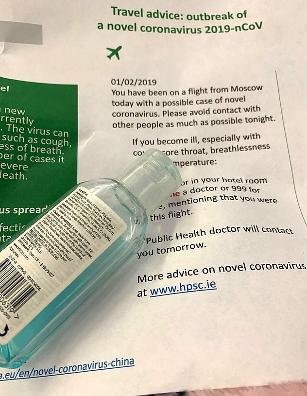 While other passengers weren’t quarantined, they were handed out leaflets explaining that they “have been on a flight from Moscow today with a possible case of novel coronavirus.”