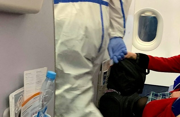 A traveler has revealed how officials wearing hazmat suits have burst onto the plane after landing to remove a suspected coronavirus victim from the aircraft.