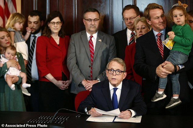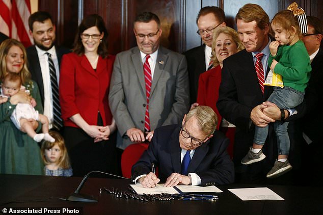 Ohio Republican Gov. Mike DeWine signed a ban on abortions after a detectable heartbeat.