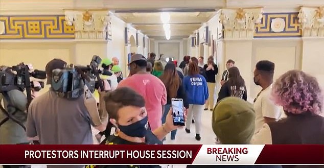 As the angry protesters stormed the fifth floor’s House gallery, people were heard shouting “no justice, no peace” and “Black lives matter.”