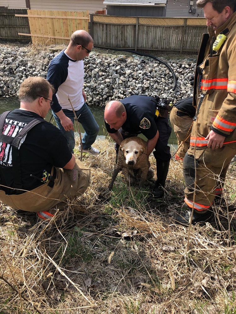 “I just glad my wife seen the dog when we were going over the bridge,” he wrote, “I tried to help at first but to steep to get him out call 911 the police and fire department helped did a great job.”