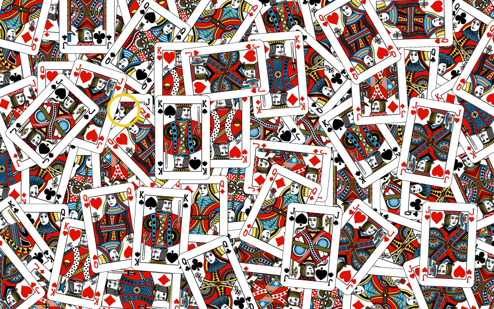 This particular ‘find the object’ puzzle proves very tricky as the card is hidden among the other Jacks, Queens, and Kings of all kinds.