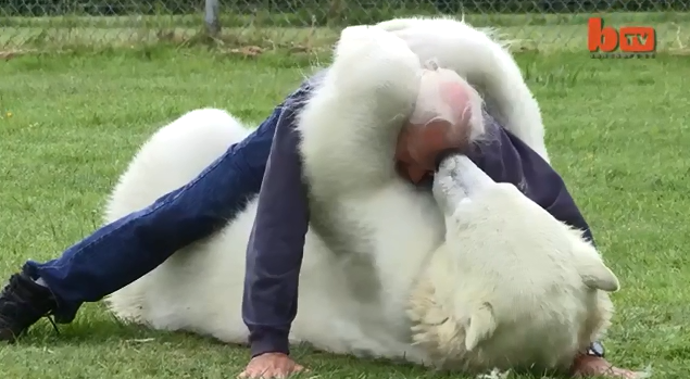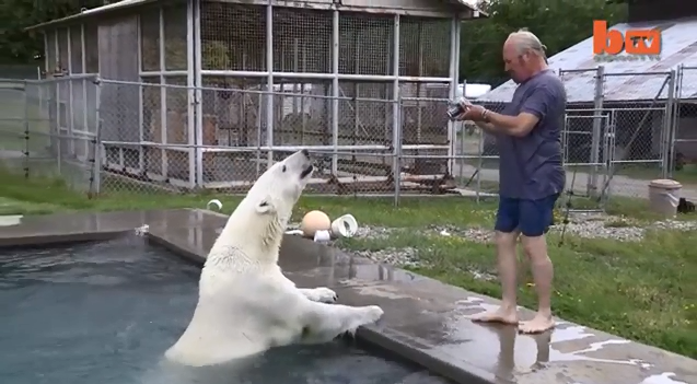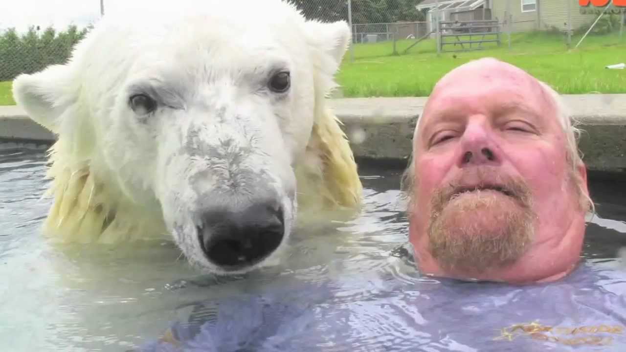 No one can even think of having a polar bear as a pet but Mark is very lucky as he has one.