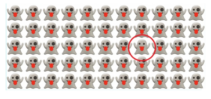 The picture shown below features a spooky yet funky theme. There is plenty of happy and smiling ghost emojis. And while each ghostly figure looks the same, there’s one inside that’s different from all others. Do you think you can carefully focus and identify which ghost is the odd one out?
