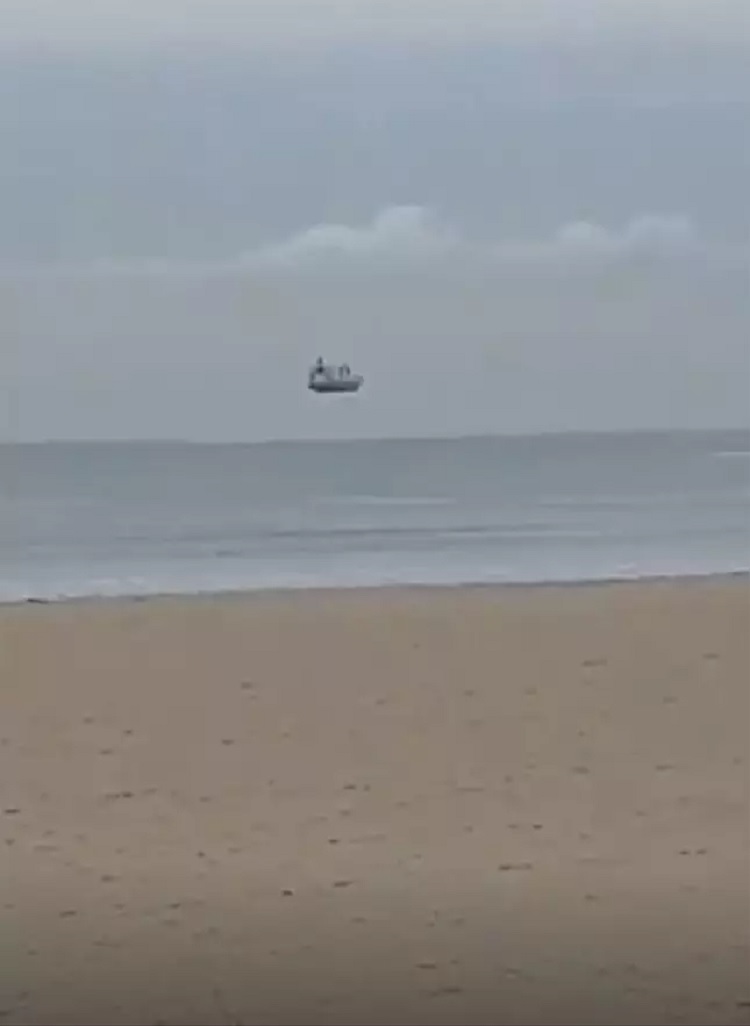 She said: “I filmed this optical phenomenon that made a ship look like it was floating in the air.”
