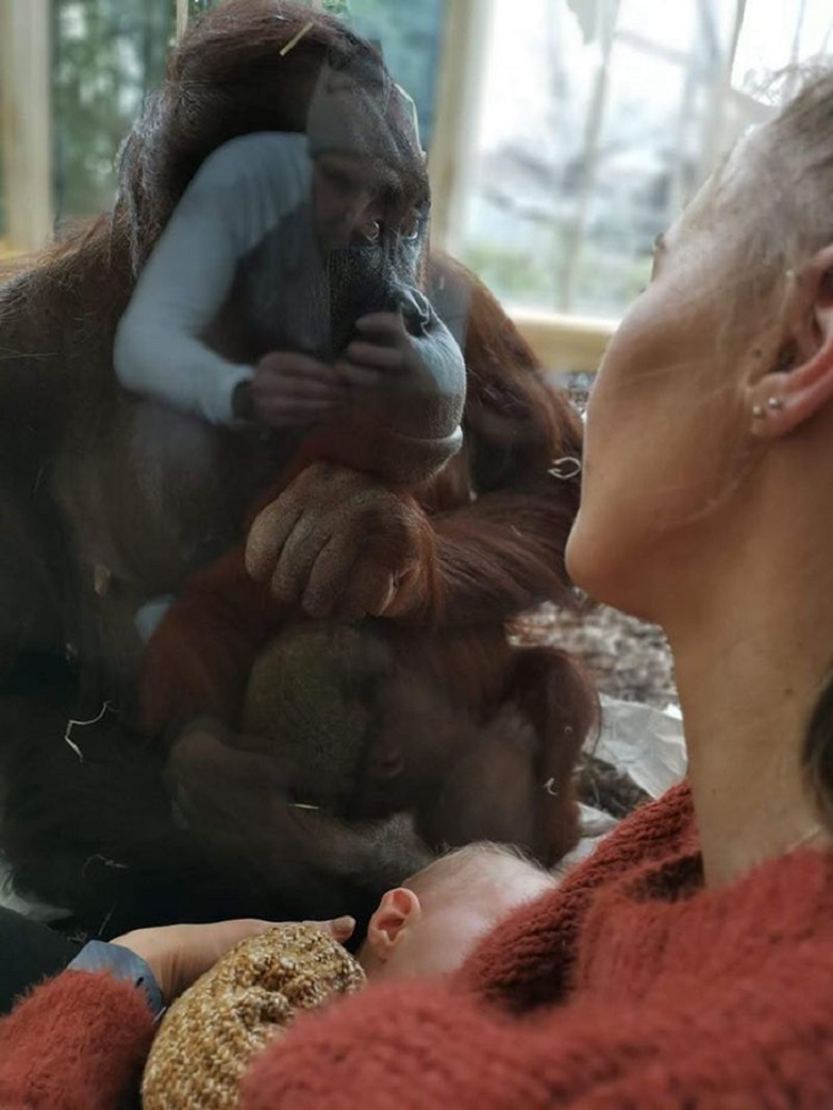 As they were touring the Schönbrunn Zoo, Gemma’s baby got hungry. So she stopped by an orangutan enclosure and started to breastfeed her child in full view of the orangutans. And that’s when the magic took place.