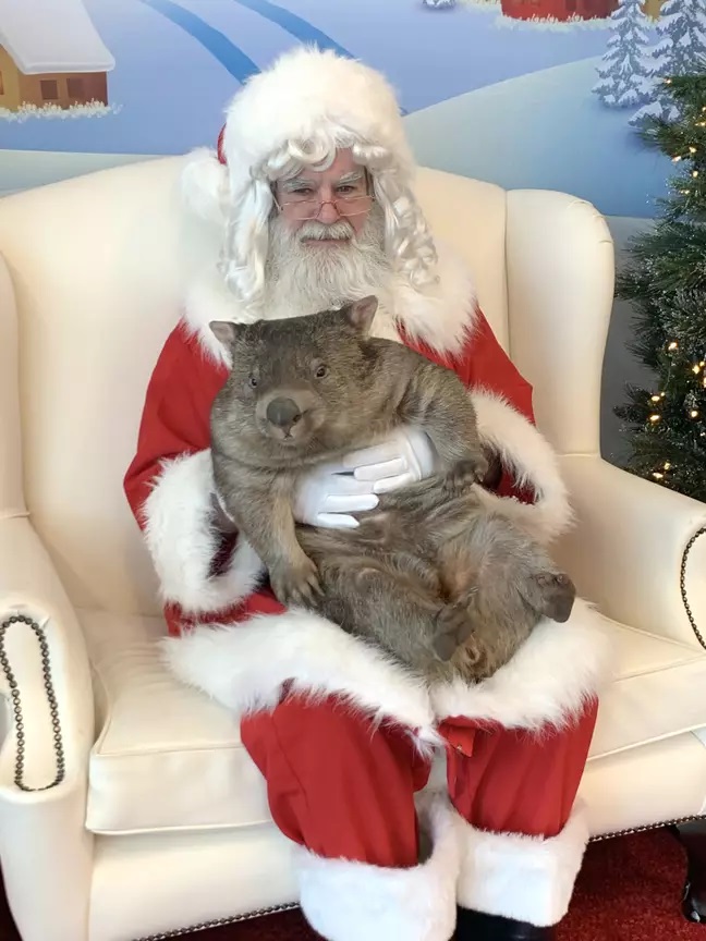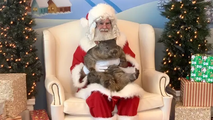 While there’s no shortage of photos of cute Christmas-edition dogs and cats, one wildlife presenter and animal lover has taken the celebration a step further by taking his adopted wombat for a picture with Santa.