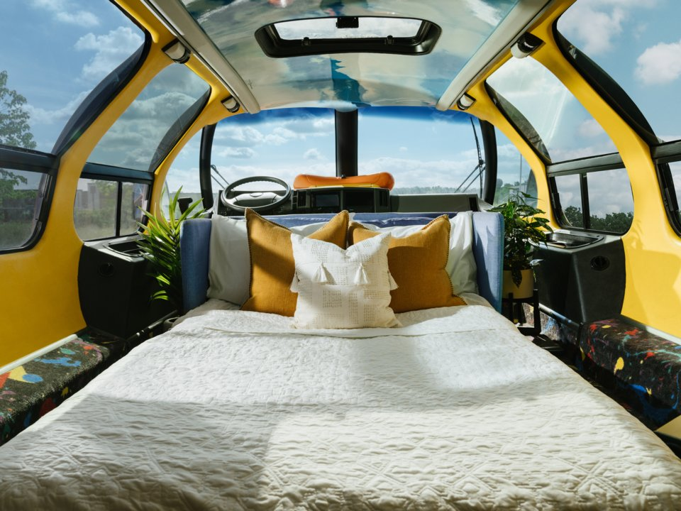 The couches can be folded out into a bed, and a sunroof directly above it makes the experience even more enjoying.