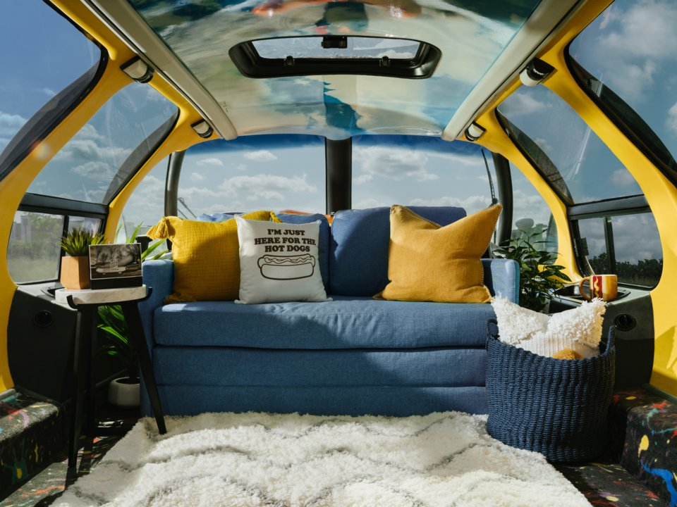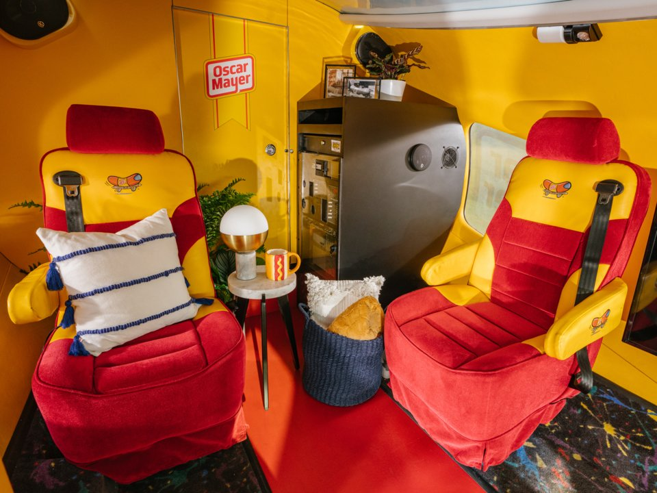 Other amenities include a roller grill (which the guests can take home) and a Wienermobile-inspired art piece designed by Laura Kiro, a local artist.