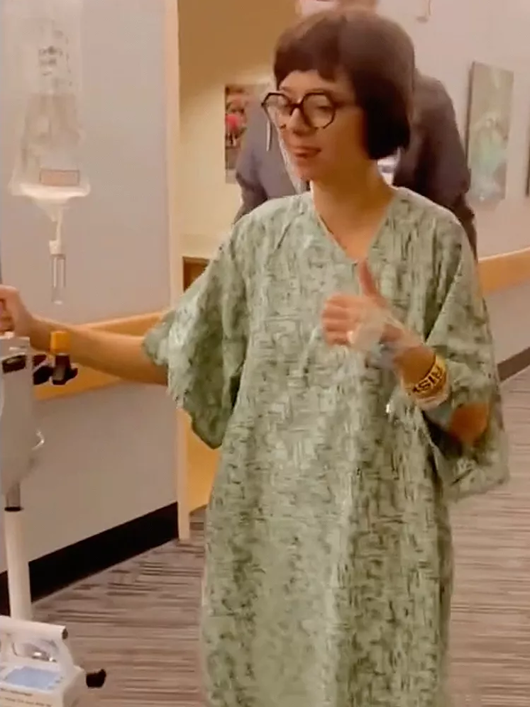 She also shared a video of her walking around the hospital while pushing her drip stand.