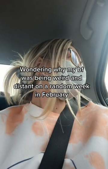 In a viral video that gained millions of views, the TikToker wrote: “Wondering why my boyfriend was being weird and distant on a random week in February.”
