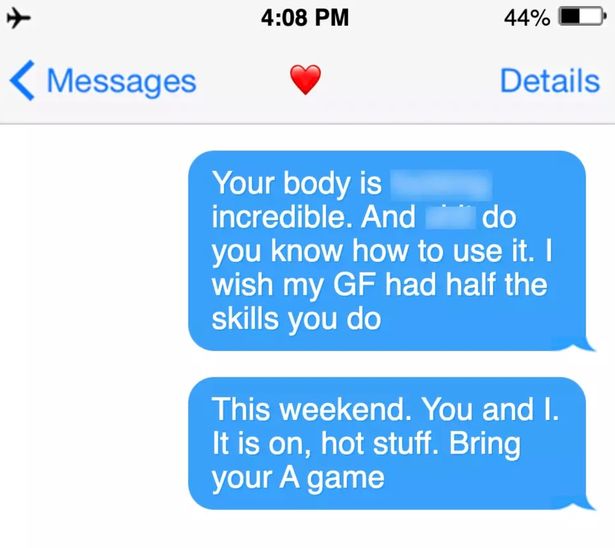 One text message said: “This weekend. You and I. it is on, hot stuff. Bring your game.”