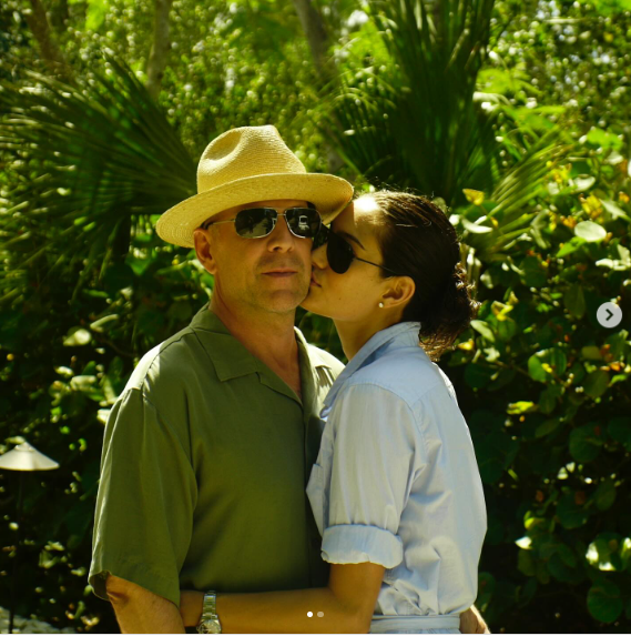 One of the photos shows the couple hugging each other while another shows Emma kissing Bruce on the cheek.