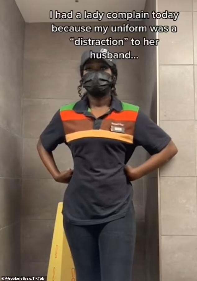 In the clip, she said: “I had a lady complain today because my uniform was a ‘distraction’ to her husband…”