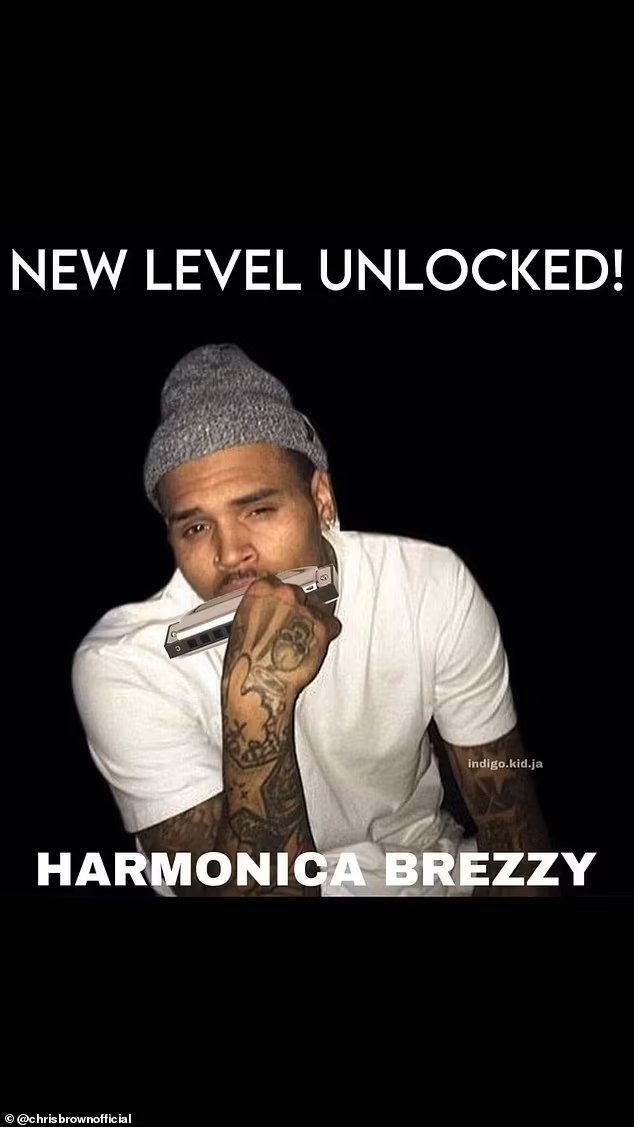 In another Instagram story, he edited a picture of him playing the harmonica and said: “New Level Unlocked! Harmonica Breezy.”