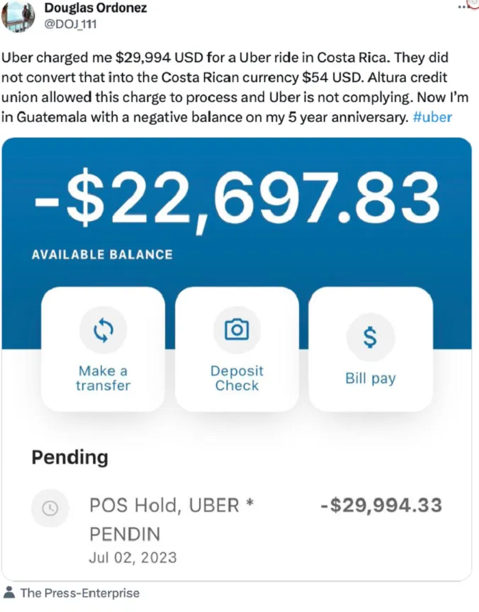 Doughlas took to Twitter and shared a screenshot of the bill from Uber, writing: “Uber charged me $29,994 USD for an Uber ride in Costa Rica.”