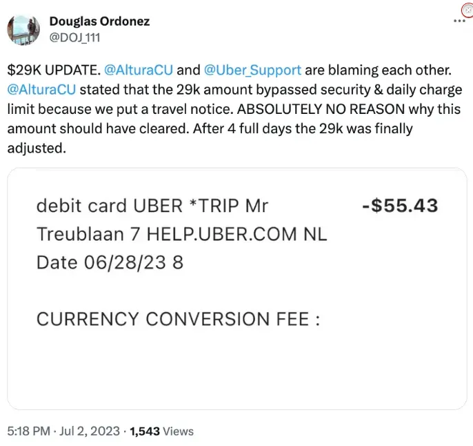 “Yes, I contacted my financial institution @Altura Credit Union immediately. They said there is nothing they can do about it at the moment as I have to wait another 4 days for the amount to possibly convert to the correct amount.”