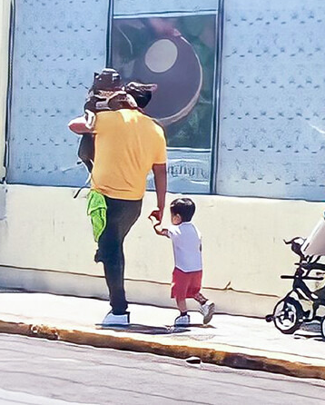 In the viral video shared by Luz Elena on TikTok, the father can be seen holding the family dog in one arm while his young son was walking next to him.