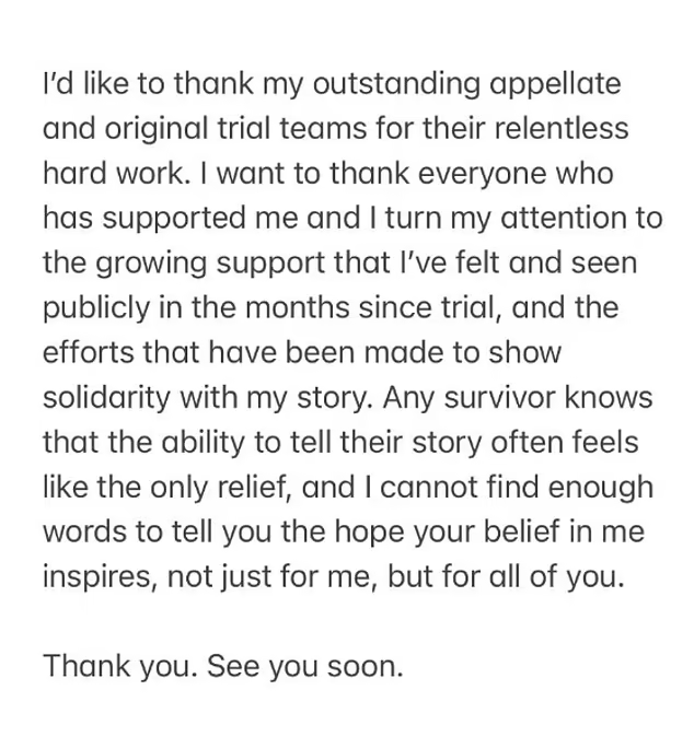 She also thanked her ‘outstanding appellate and original trial teams’ for their efforts.