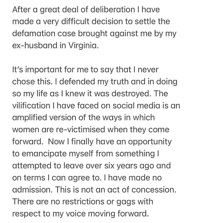 “We are pleased to formally close the door on this painful chapter for Mr Depp, who made clear throughout this process that his priority was about bringing the truth to light,” the statement said.