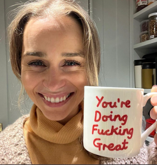 The Game of Thrones star, 36, took to her Instagram page and shared a photo of herself with a mug that reads, ‘You’re doing f***ing great.’