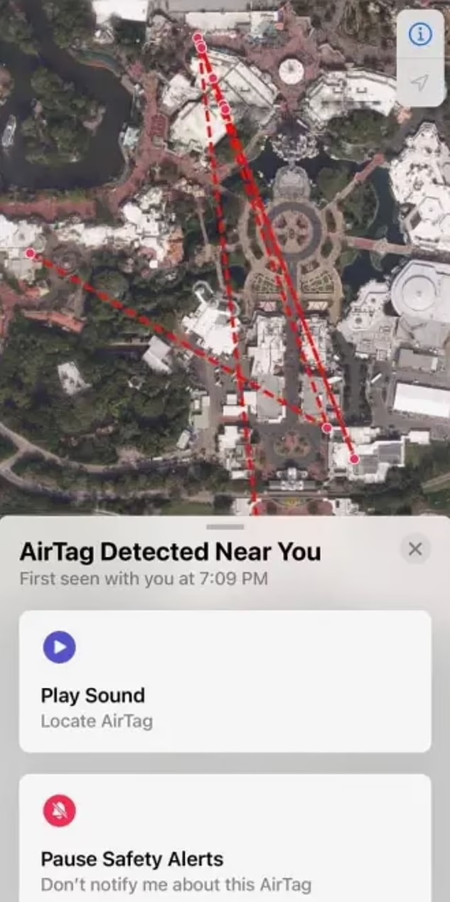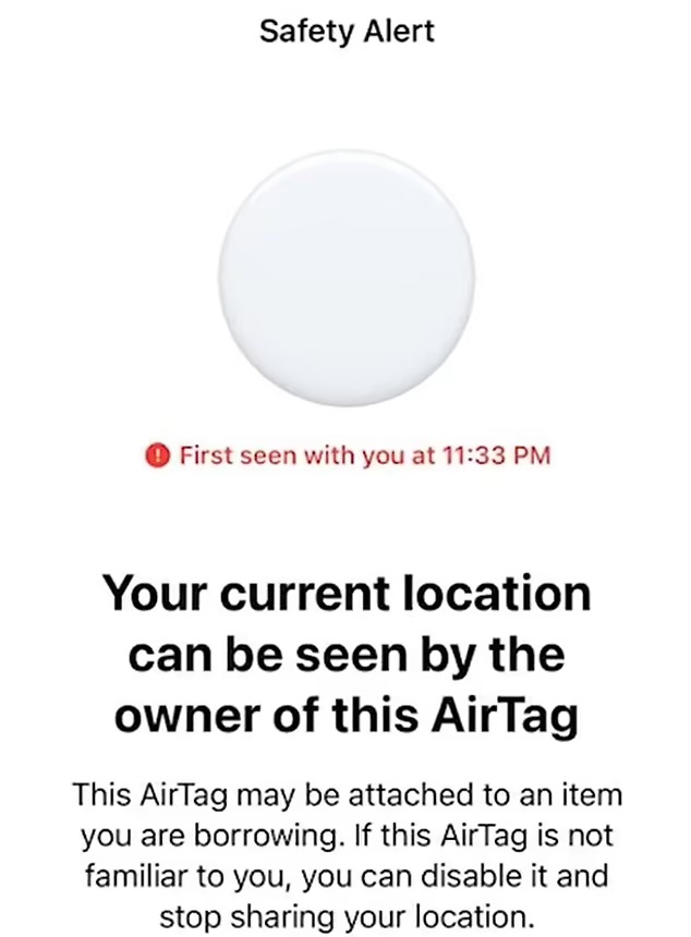As Gaston explained, her daughter, Madison, got scared after receiving an iPhone notification saying she was being tracked from 7 to 11 pm using an AirTag tracker.
