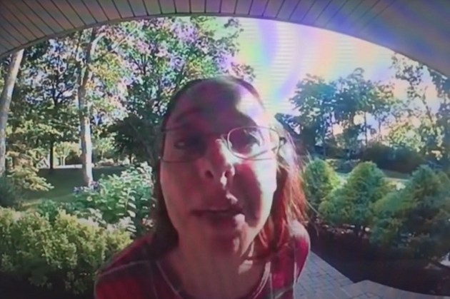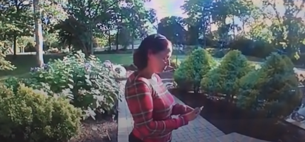 The video starts with the woman ringing the doorbell. The customer can be heard saying that she could leave the food on the doorstep.