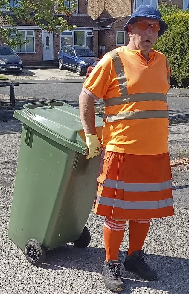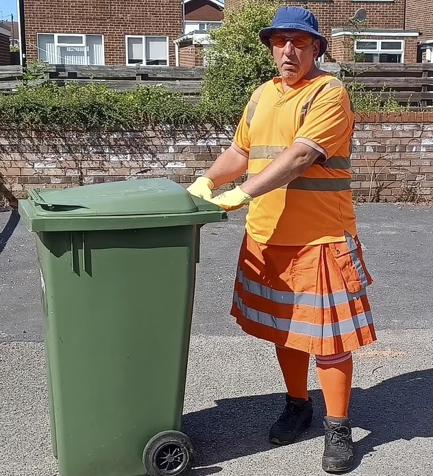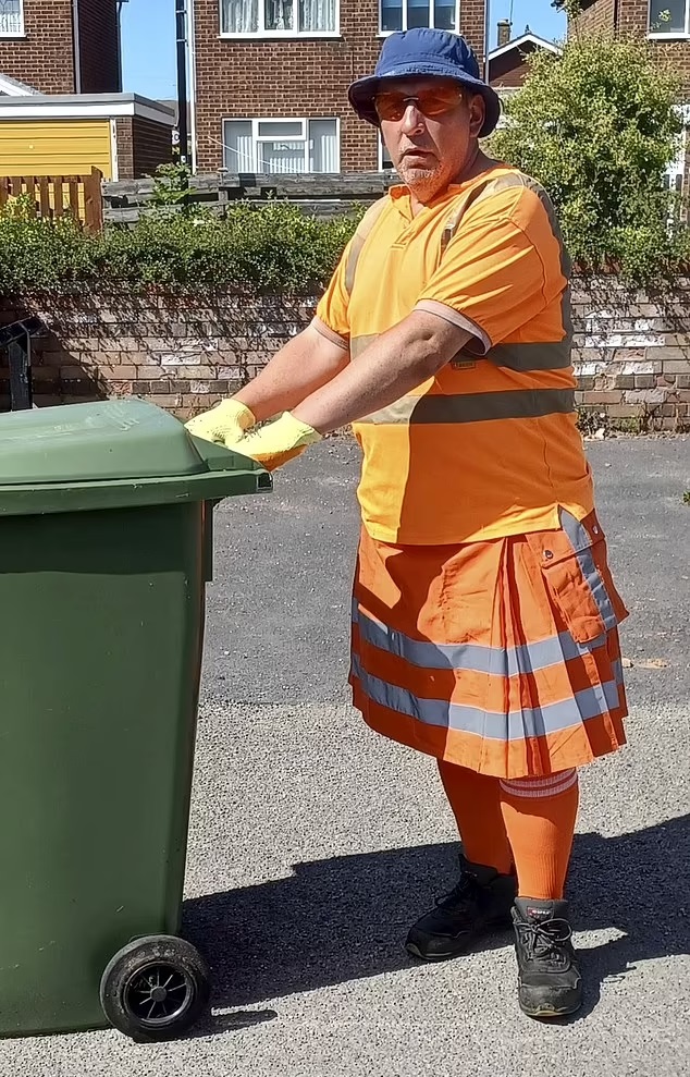 A garbage collector has gone viral after defying his bosses by wearing a skirt to work.