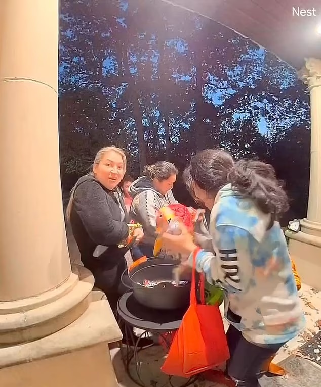 The Texas mother in question was caught on door camera raiding a huge bowl of candies left unsupervised outside musician Cody Tate’s house together with her family members.