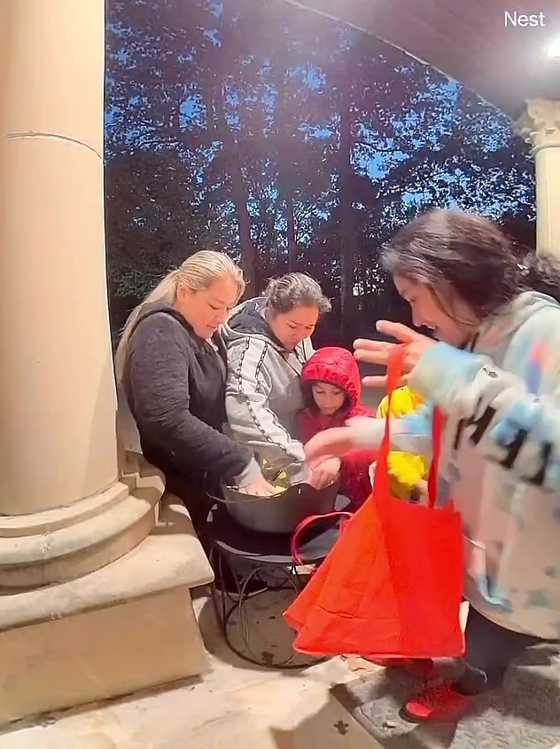 A greedy mother has been slammed on social media after selfishly emptying an entire bowl of Halloween candy outside a country star’s home.