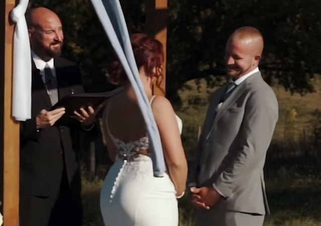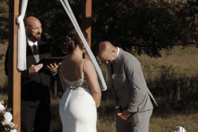 “That’s what you’re going out with?” the officiant asked, and the groom confirmed it again while his bride awkwardly smiled.