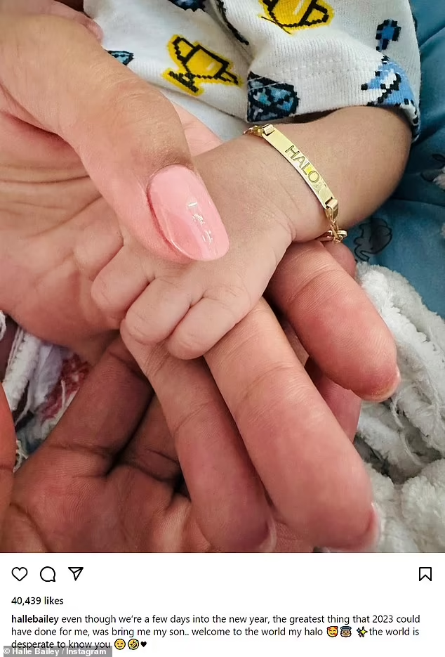 Halle shared the heartwarming news on Instagram with a photo showing her holding her baby’s tiny hand.