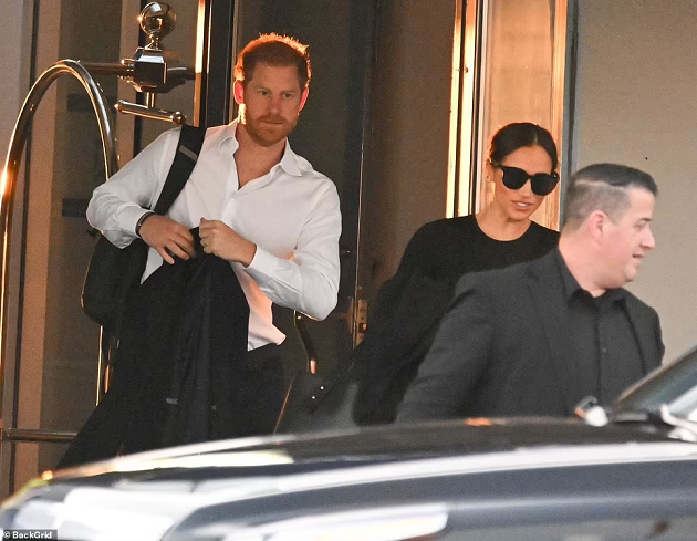 The mother-of-two wore an all-black outfit she matched with large sunglasses while the duke sported a buttoned-down white shirt he partnered with black trousers.