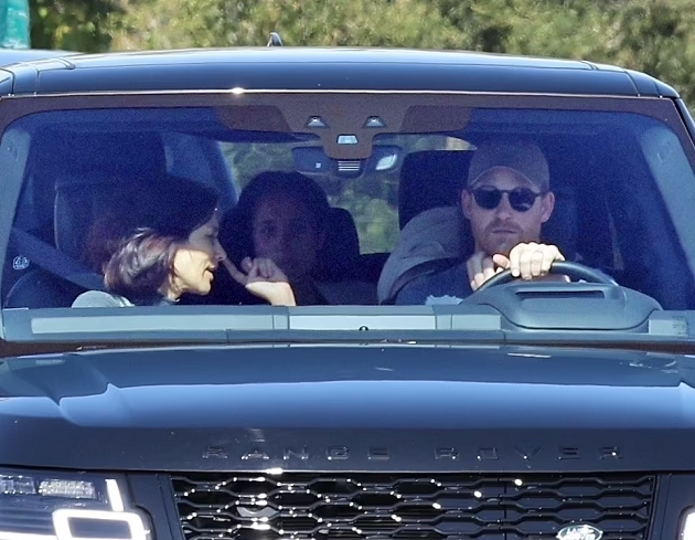Harry could be seen driving the car while Meghan was chatting with them from the backseat.