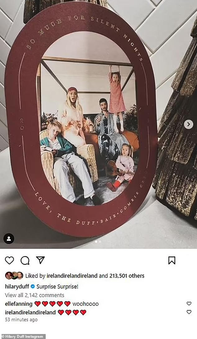 Hilary Duff has announced that she and her husband Matthew Koma are expecting their fourth child with a hilarious Christmas card.