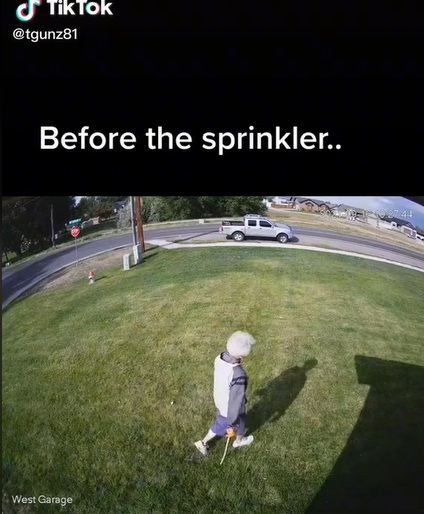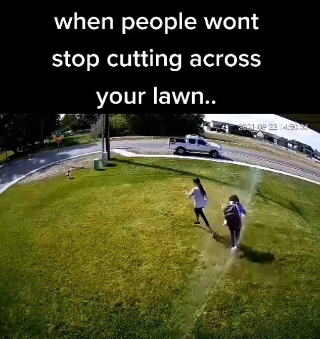 Thomas Lyons’ security camera footage went viral after the man posted a video showing people getting squirted by the water sprinkler he installed with the intention of keeping unwanted guests off his property.