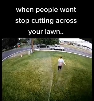 To combat this issue, the disgruntled homeowner installed a motion sensor-operated water sprinkler that showers anyone who dares to approach the man’s lawn.